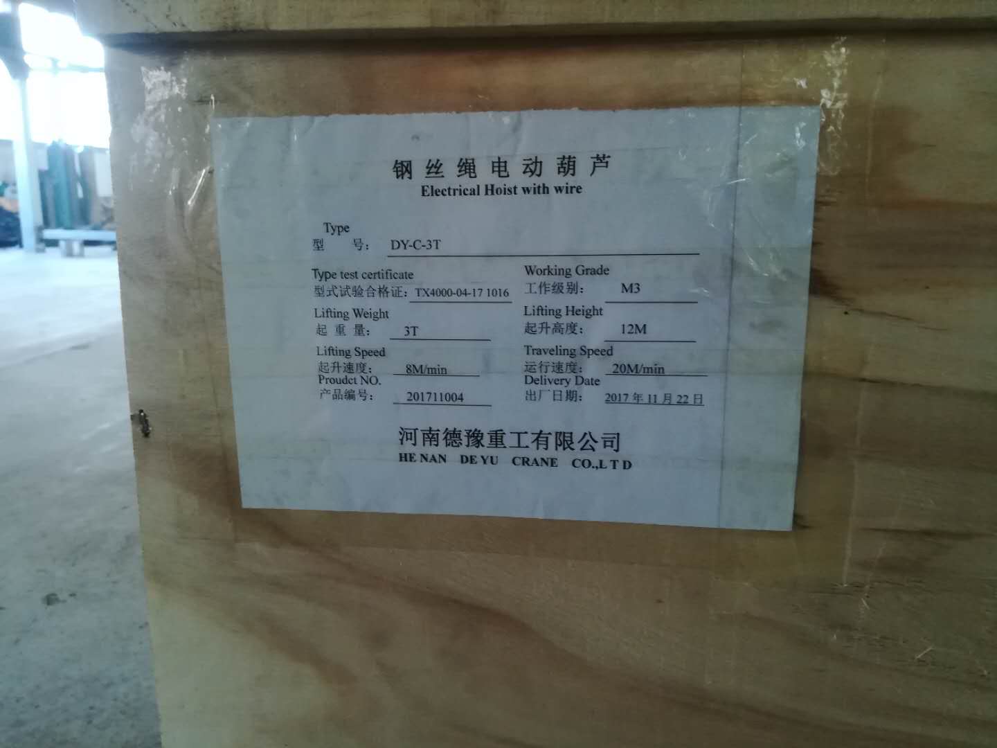 實(shí)力代表產(chǎn)品DY系列歐式電動(dòng)葫蘆受到起重機(jī)使用單位認(rèn)可