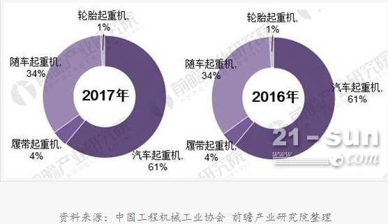 圖表2:2016-2017年中國起重機銷量結(jié)構(gòu)對比圖(單位:%)